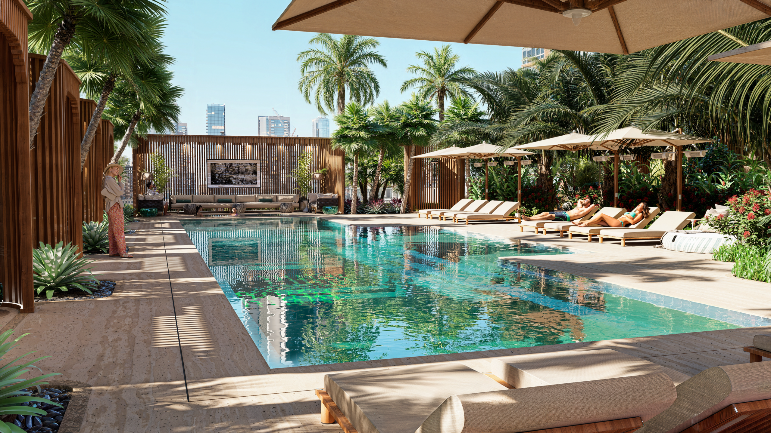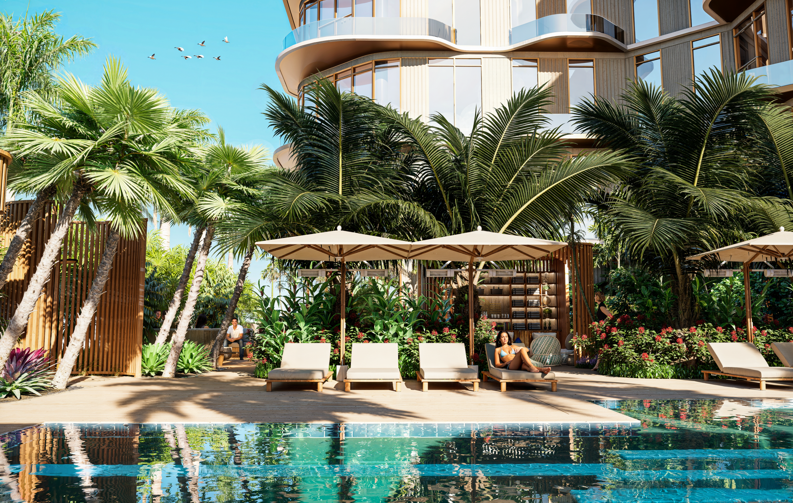 The amenity offering, exceeding 60,000 square feet, is curated as an extension of the Waldorf Astoria lifestyle. Anchored by the brand’s iconic Peacock Alley Lounge, the program includes a comprehensive wellness center with spa treatment rooms, Pilates and motion studios, a golf simulator, and private dining. Outdoors, a 25,000-square-foot “garden in the sky” will feature a resort-style pool, hot and cold plunge pools, and a Florida Pavilion for entertainment.