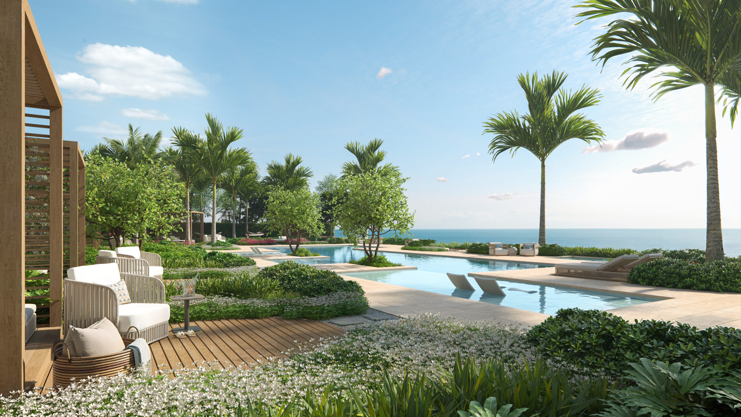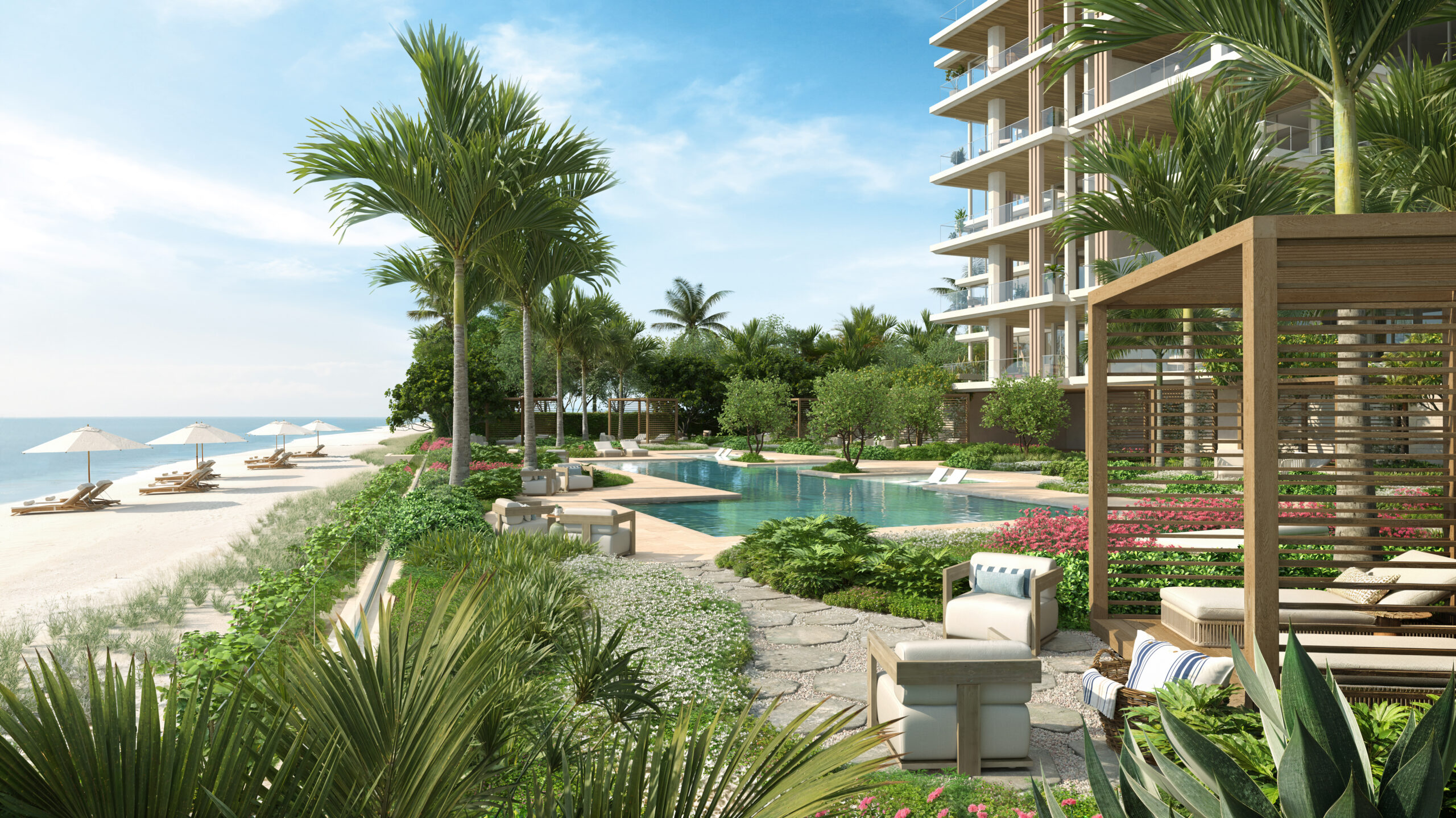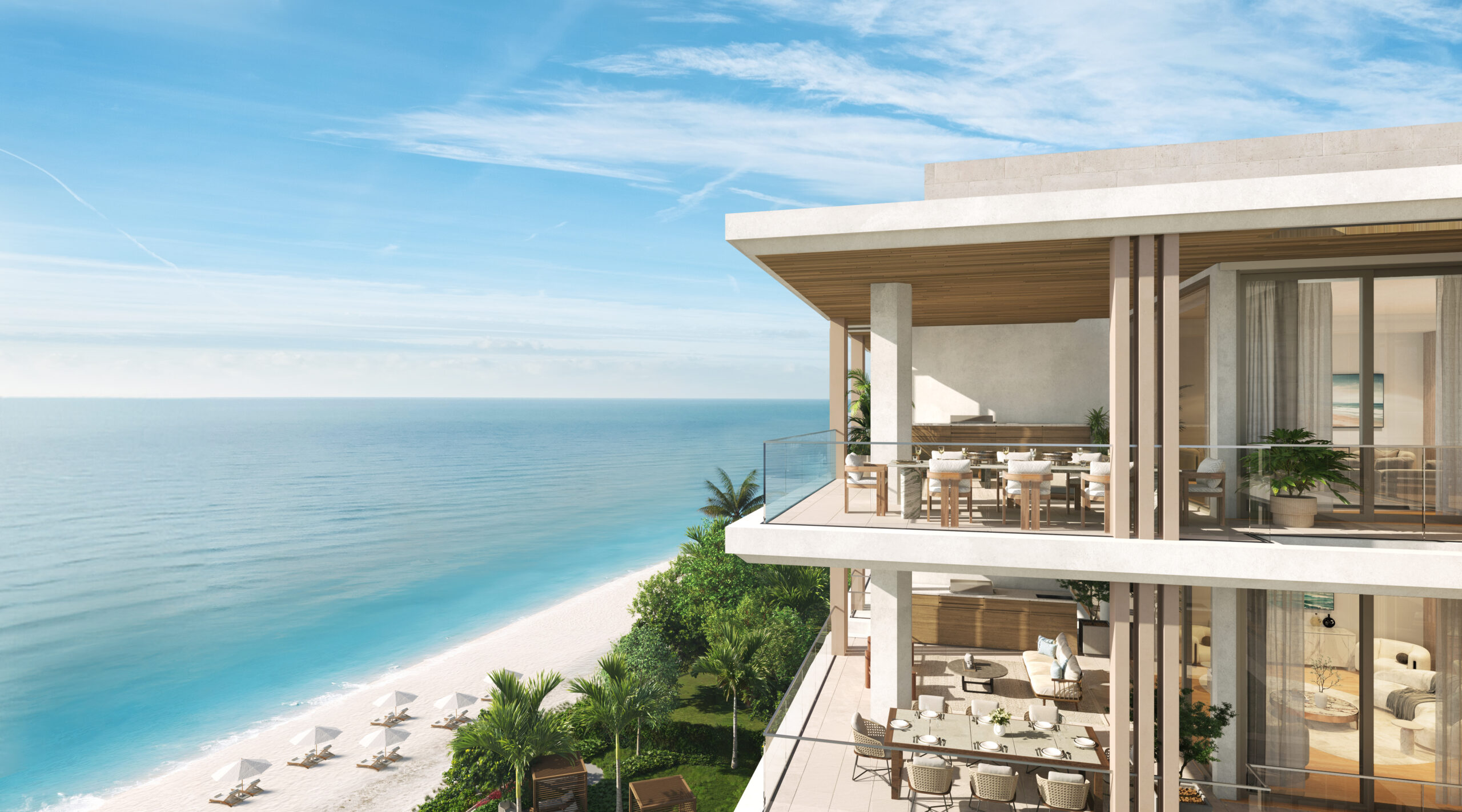 Introducing Olana, a collection of 12 estate-scale, beachfront residences developed by Kolter Urban and BH Group. The floor plans of the exclusive Gulf-side enclave have been designed to capture the abundant natural light and breathtaking views by way of 11-foot ceilings with floor-to-ceiling glass walls that open seamlessly onto multiple terraces. Verdant tropical-inspired meditation gardens by renowned Enea Landscape Architecture create an immersive haven for an unparalleled sense of tranquility and privacy.